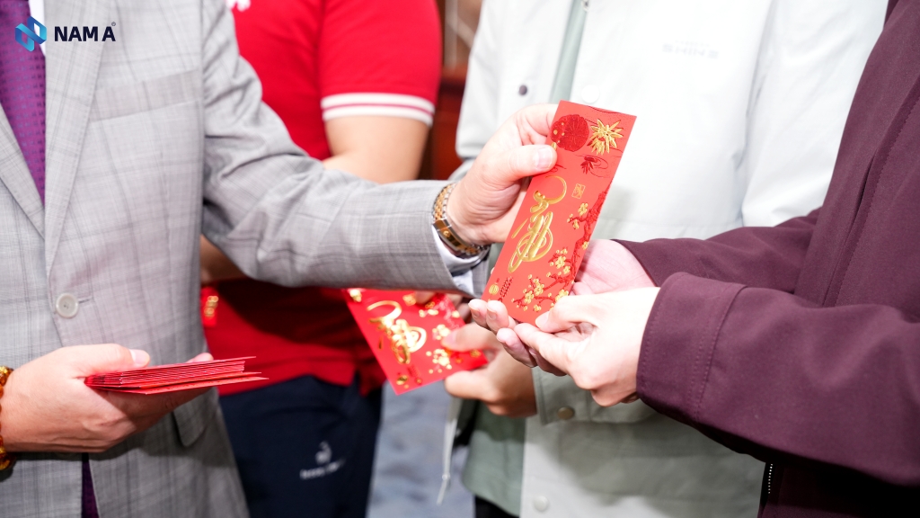 Tại đây, Tổng Giám đốc đã trực tiếp gửi những lời chúc mừng năm mới sức khỏe, bình an và hạnh phúc đến toàn thể đội ngũ khối văn phòng. Những phong bao lì xì may mắn được trao tận tay từng người thay cho lời tri ân và niềm tin vào một năm làm việc gắn kết, hiệu quả. Đây cũng là khoảnh khắc Ban lãnh đạo chia sẻ về tầm nhìn chiến lược, định hướng đưa Nam Á Group vươn tới những cột mốc vĩ đại hơn trong năm Bính Ngọ.