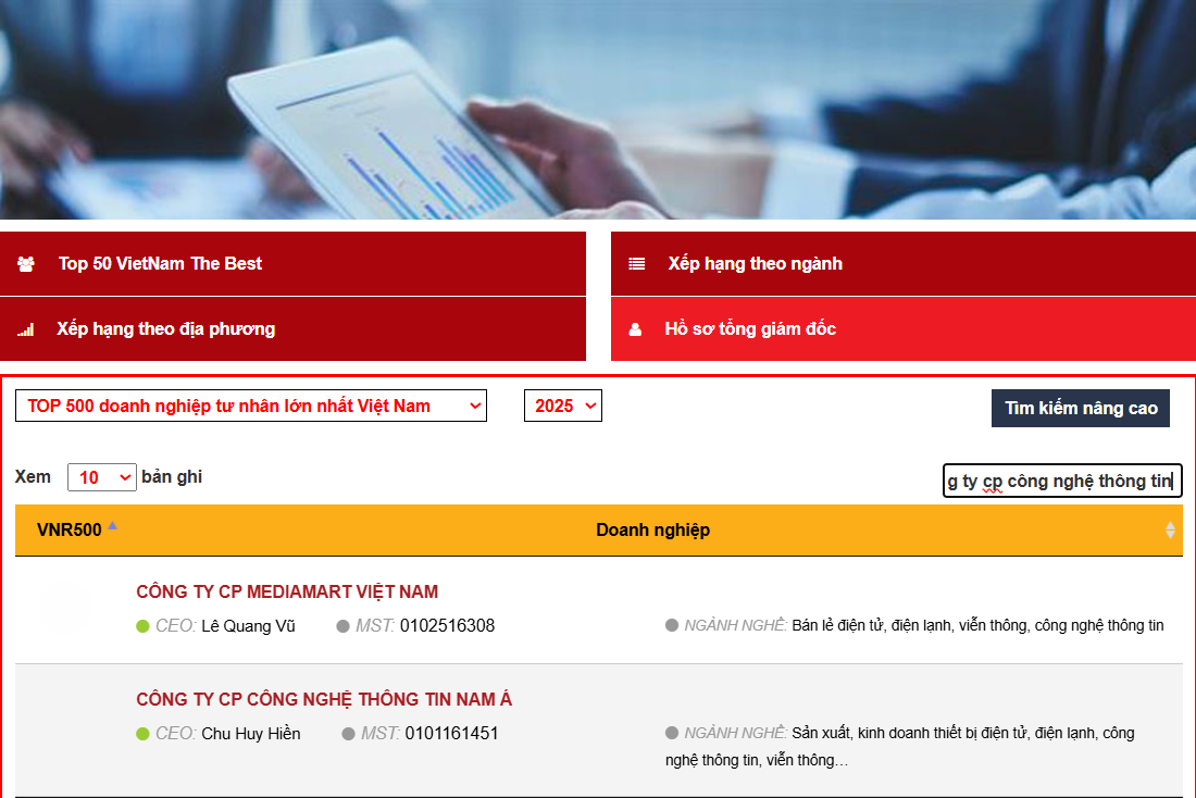 + Top 500 Doanh nghiệp tăng trưởng nhanh nhất Việt Nam 2025 (FAST500)