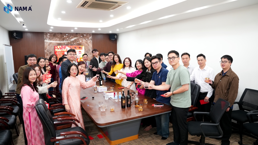 Tập thể CBNV Nam Á Group tại trụ sở 64 Vũ Phạm Hàm khai xuân